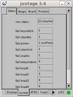 zur Verfügung. Eine Temperaturüberwachung mit Sensoren an Bodenplatte und Scanköpfen